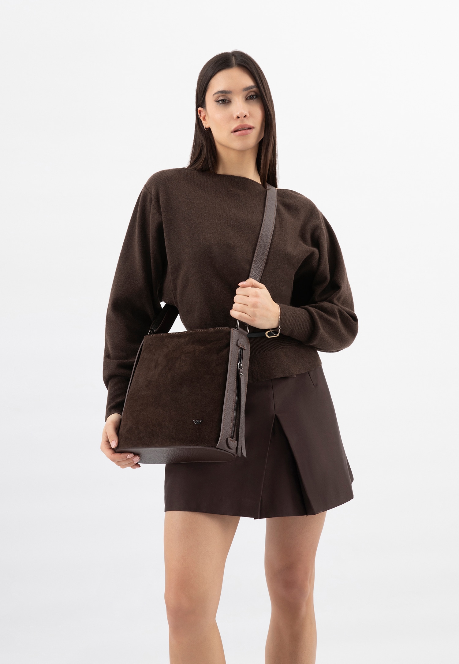 Dark brown leather women's shoulder bag